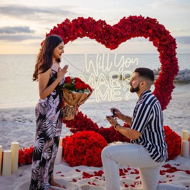 Our Intimate Proposal package is designed to create a breathtaking, private moment for one of life’s most important questions. We take care of every detail—romantic décor, elegant, soft lighting, and curated touches like candles, flowers, and personalized signs. Whether it’s set on a beach, in a garden, or under a starlit sky, the atmosphere is crafted to reflect your love story. We work closely with you to make sure the setting is just right, so all you have to do is show up, take their hand, and ask.